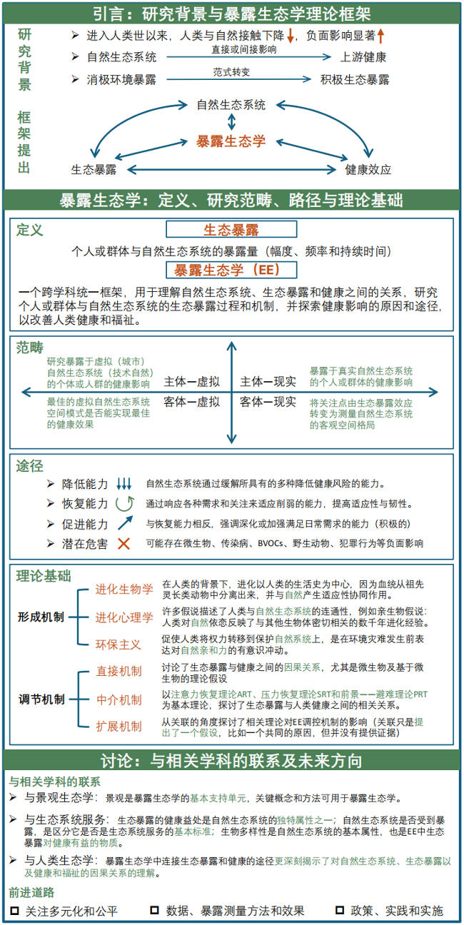 图1 暴露生态学论文图文摘要Exposure Ecology drives a unified understanding of the nexus of (urban) natural ecosystem, ecological exposure, and health