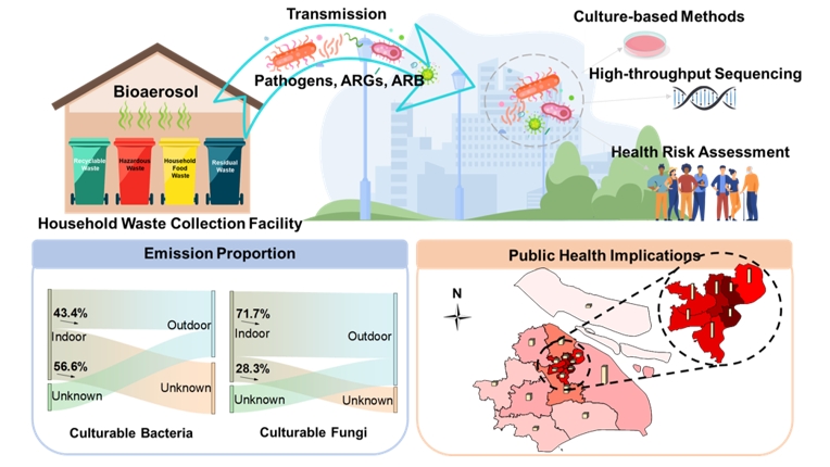 近期,在国家重点研发计划项目、广州国家实验室重大项目、国家自然科学基金面上项目等项目的资助下,blh漫画 环境系环境健康教研组李丹教课题组以“Emission Dynamics and Public Health Implications of Airborne Pathogens and Antimicrobial Resistance from Urban Waste Collection Facilities”为题,在Environmental science & technology上发表了一篇研究长文(Article)。