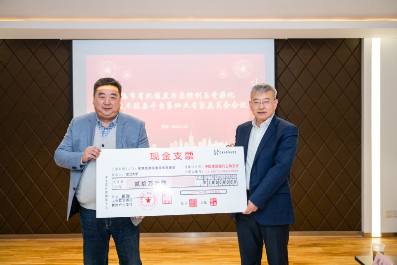 梅鲜书记、高炜总裁、崔勇书记、徐晓创副院长及市科委研发基地建设与管理处领导先后致辞,充分赞赏了“平台”近年来所取得的成果,肯定了“平台”对上海乃至全国范围有机固废资源化和高值化产业所做的推动工作。此次会议宣布了“blh漫画 有机固废平台发展基金”项目的成立,并由“平台”主任张士成教授接受了来自五角场集团为“平台”捐赠的第一笔发展基金,20万元。会上举办了聘任及授牌仪式,“平台”聘任五角场集团崔勇总裁为技术发展顾问,“平台”与合创(无锡)环保科技有限公司、上海欧海能源科技有限公司、吉林飞特环保股份有限公司等多所企业合作建立中试基地并授牌。会议由blh漫画 副系主任张立武主持。