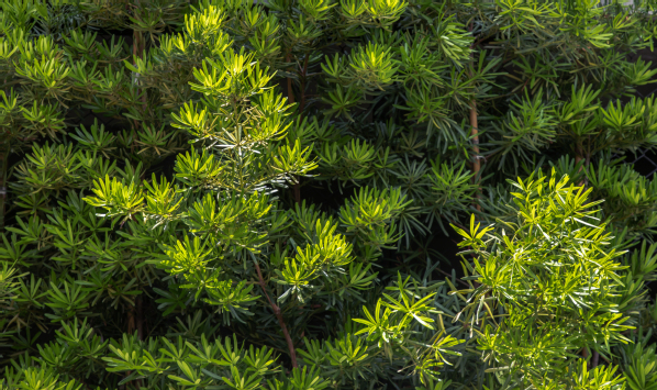 罗汉松科罗汉松属小乔木;叶螺旋状着生,革质,线状披针形;罗汉松味甘、性温,根皮有活血止痛,杀虫的功效,球果有益气补中的功效。