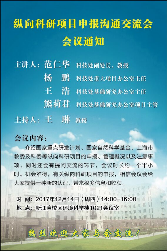 纵向科研项目申报沟通交流会会议通知