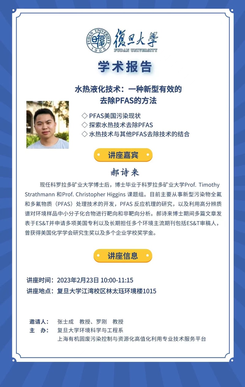 【学术报告】水热液化技术:一种新型有效的去除PFAS的方法