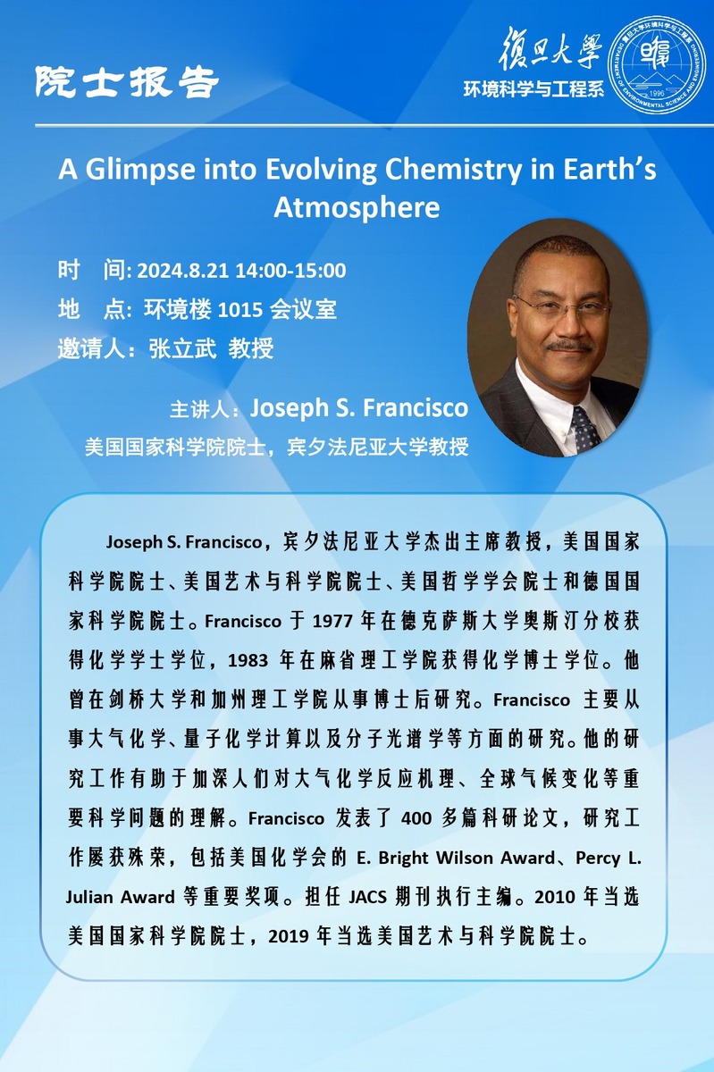 【学术报告】A Glimpse into Evolving Chemistry in Earth’s Atmosphere