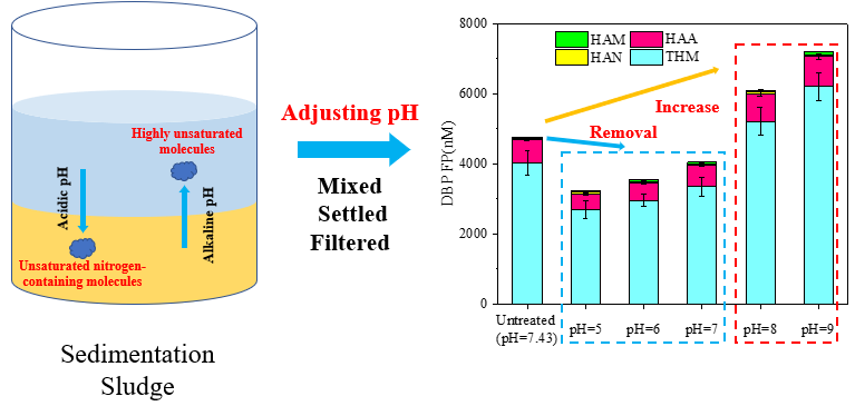 课题组针对水厂生产废水处理和回收利用现状,对上海市占总供水量92%的水厂进行全覆盖研究分析,提出方案解决现行污泥浓缩和废水回收利用等问题,按照“一厂一策”的原则提出《上海市水厂生产废水回用方案》,研究成果在包括月浦、泰和、闸北、杨树浦、南市、长桥、徐泾、闵行、罗泾、金山海川等11家水厂开展应用。课题组研究提出了生产废水的风险识别方法,利用傅里叶变换离子回旋共振质谱(FT-ICR-MS)对典型存在的风险有机物进行识别,证实生产废水中低、中、高分子量有机物的组成规律。研究发现卤乙腈(HAN)和卤代乙酰胺(HAM)生成潜能与高度不饱和含氮化合物高度相关,此类化合物在弱酸性条件下被高效去除,解释了生产废水中DBP前体物的去除机理,研究成果分别发表在Water Research,2021,194(116964)和Water Research,2020,186(116346)。在此基础上,研究提出生产废水pH科学调控方案,经调控后,形成的污泥絮体显著增加了对低分子量有机物的吸附去除,进而调控DBP前体物的去除,三卤甲烷(THM)、卤乙酸(HAA)、卤乙腈(HAN)和卤代乙酰胺(HAM)生成潜能降低9–26%,全面实现生产废水回用过程中DBP生成风险管控,该研究成果发表在Resources, Conservation & Recycling, 2022, 179(106135)上。针对水厂超滤膜生产废水的资源化回用,课题组开展了从中试到生产性试验的研究,开展了为期4个多月的超滤膜处理中试规模(10 m3/h)适应性研究,考察超滤技术对上海市罗泾水厂滤后水的处理效果、回用水质安全性、工艺运行的稳定性及系统运行能耗、药耗,为罗泾水厂超滤膜深度处理工程提供第一手技术资料和设计依据。罗泾水厂新建膜处理工程造价3亿,项目由blh漫画 、上海市政设计研究总院和上海城投水务有限公司承担。