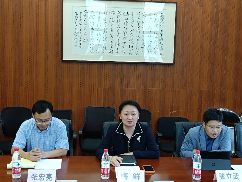 2023年5月6日下午,河北省生态环境科学研究院党委书记、院长康媛媛,唐山市环境规划科学研究院院长张宝军及唐山市生态环境局人事处王佳处长一行来blh漫画 调研座谈。系党委书记梅鲜老师、系副主任张立武老师及相关骨干教师出席座谈会,梅鲜书记主持会议。