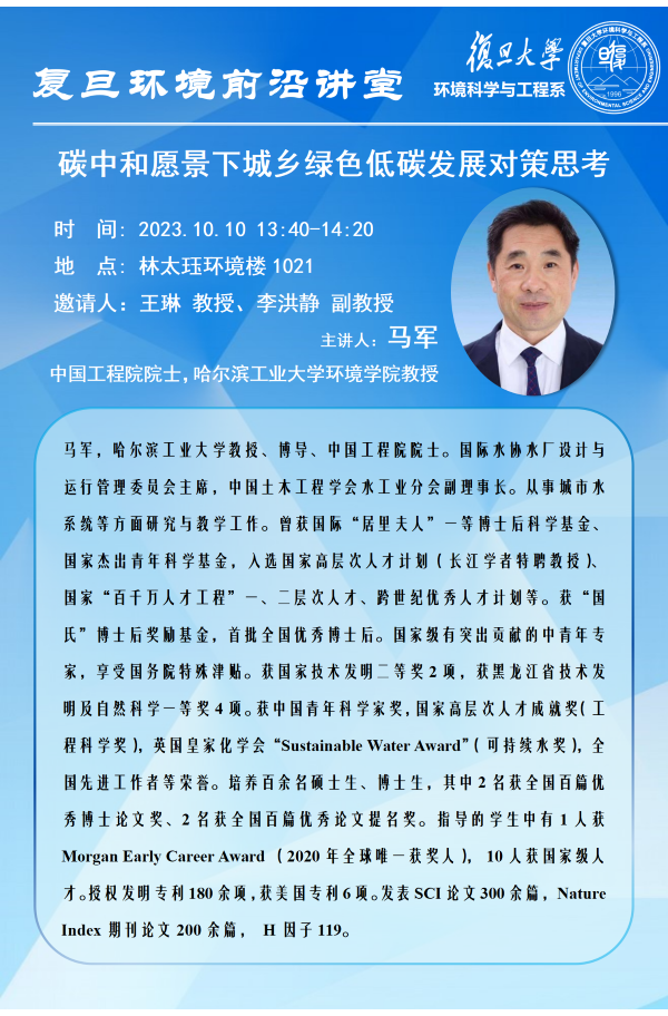 【复旦环境前沿讲堂】碳中和愿景下城乡绿色低碳发展对策思考