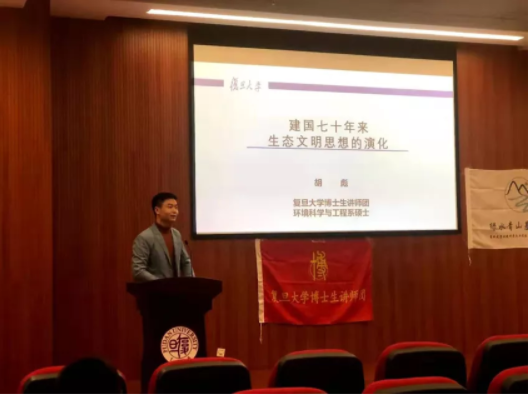 开班仪式结束后,来自学校博士生讲师团的胡彪讲师为我们带来了基层团校的第一次课程:四史系列——“建国七十年来生态文明思想的演化”主题讲座。他首先引用了习近平总书记的一次发言,提出认真学习马克思主义理论、认真学习四史,为实现中华民族伟大复兴的中国梦贡献智慧和力量的期望和要求;然后,他联系起中国传统文化中的生态文明思想,将建国七十年来的生态文明思想演化分为五个时期,分别是:毛泽东时期、邓小平时期、江泽民时期、胡锦涛时期和习近平时期,其中重点介绍了习近平总书记的生态文明思想,明确了习近平总书记在十九大上针对生态文明建设的四点要求,即实行最严格的生态环境保护制度、全面建立资源高效利用制度、健全生态保护和修复制度、严明生态环境保护责任制度。通过系统性地回顾中国共产党为建设生态文明所付出的努力,学员们深刻认识到了党长期以来建设“绿水青山”的不懈追求和满足人民群众美好生活的殷切期望,获益匪浅。