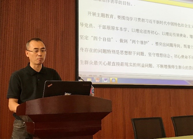 学校主题教育巡回指导组组长姜良斌老师就学校主题教育工作进行了介绍,并对系党委对于“不忘初心,牢记使命”主题教育工作具体细致的安排表示了肯定。