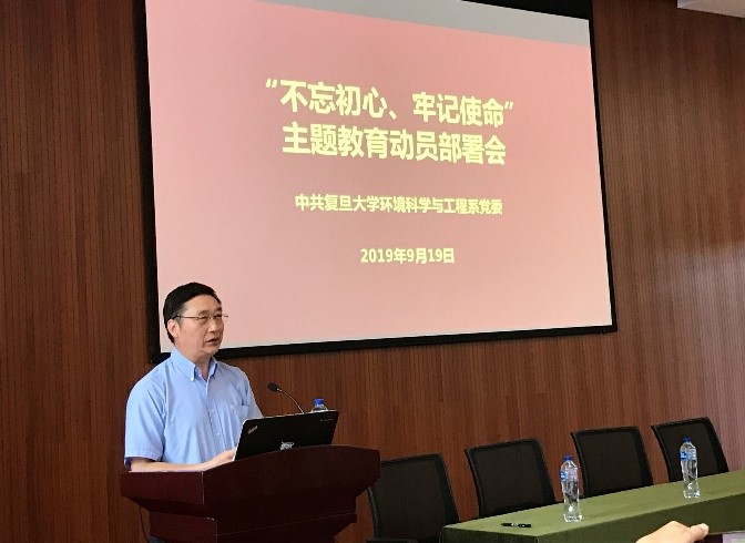 2019年9月19日上午,环境系党委于林太珏环境楼1021会议室举行 “不忘初心,牢记使命”主题教育动员部署大会,会上,党委书记高效江老师作动员讲话,学校第二巡回指导组组长姜良斌同志、联络员范慧慧同志莅临现场指导工作。环境系及大气系党政领导班子、教师党支部全体党员教师、退休支部代表及学生党支部代表参加了本次大会。