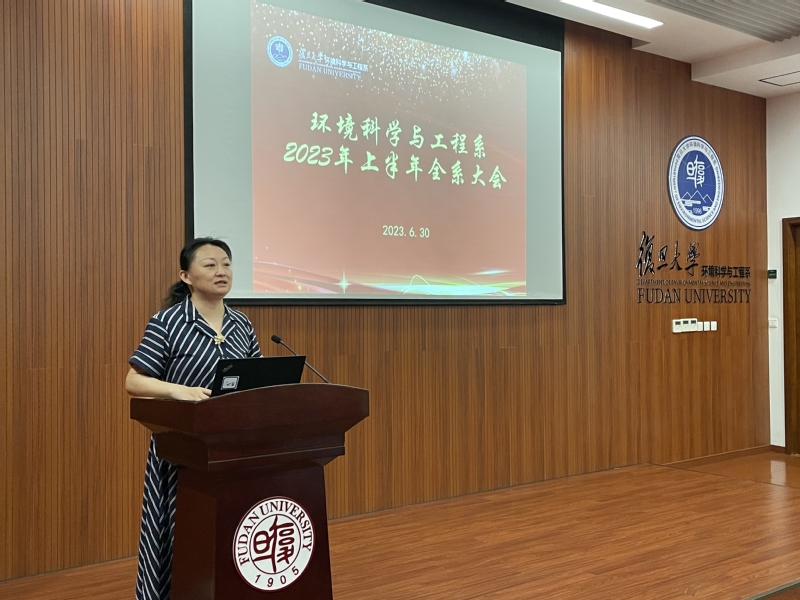 江湾校区环境科学楼1021报告厅举行。会议由系党委书记梅鲜主持,系主任王琳、副系主任张立武、系党委副书记王文和在校教职员工出席了会议。