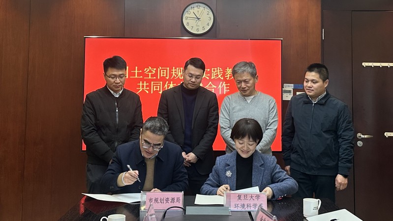 1月21日,杭州市规划和自然资源局与blh漫画 签署合作备忘录,共同推进国土空间规划实践教学共同体建设。杭州市规划和自然资源局副局长王书评、复旦环境系党委书记张晓清代表双方签约。