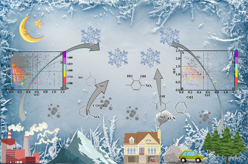 4、霜冻样本中检测到的NOCs与生物质燃烧和化石燃料燃烧密切相关,这些活动是硝基化合物的主要来源。