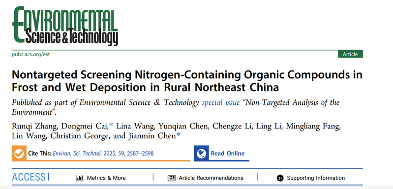 近日,blh漫画 陈建民教授课题组在霜化学的非靶向研究领域取得重要研究进展,该团队通过系统性试验,揭示了霜冻作为一种重要的大气氮沉降途径,能够有效捕获大气中的含氮有机化合物,尤其是在霾天期间,其沉降通量显著增加。这些发现强调了霜冻在氮循环中的重要作用,并提示了其对生态系统和土壤健康的潜在影响。研究结果为评估霜冻沉降对氮循环的影响提供了重要数据支持,并为减少大气氮沉降提供了科学依据。研究成果以“Non-targeted Screening Nitrogen-Containing Organic Compounds in Frost and Wet Deposition in Rural Northeast China”为题,以supplement 封面文章形式发表在国际知名期刊Environmental Science and Technology上。